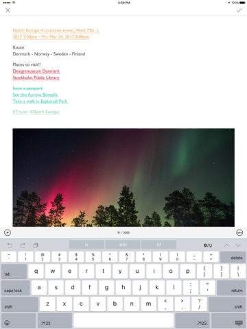 You can also add pictures, voice recordings, files, hyperlinks, current location, and hashtags to your pages.