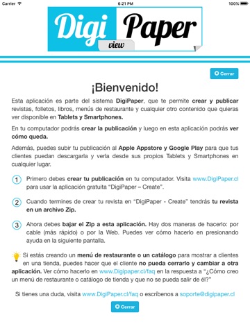 Cuando veas la publicación y te guste como quedó, puedes publicarla en las tiendas (como App Store). Contáctanos a través de la opción “Soporte técnico” o visita www.DigiPaper.cl/faq