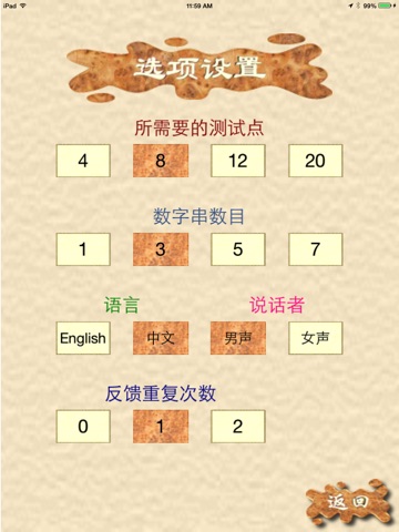 Digits in Noise Test is a program that can be used to measure your ability to recognize digits (or speech) in the presence of background noise. The listeners are presented with a series of digits (generally 3 digits) with noise and must immediately repeat them back. If the answer is correct, a different list will be presented with reduced signal-to-noise ratio. The signal-to-noise ratio a person can identify digits on 50% of all trials is that persons speech (or digit) recognition threshold. With the highlighted feedback, the program can also be a useful tool to improve the listeners ability to understand digits (and/or speech) in the presence of background noise.