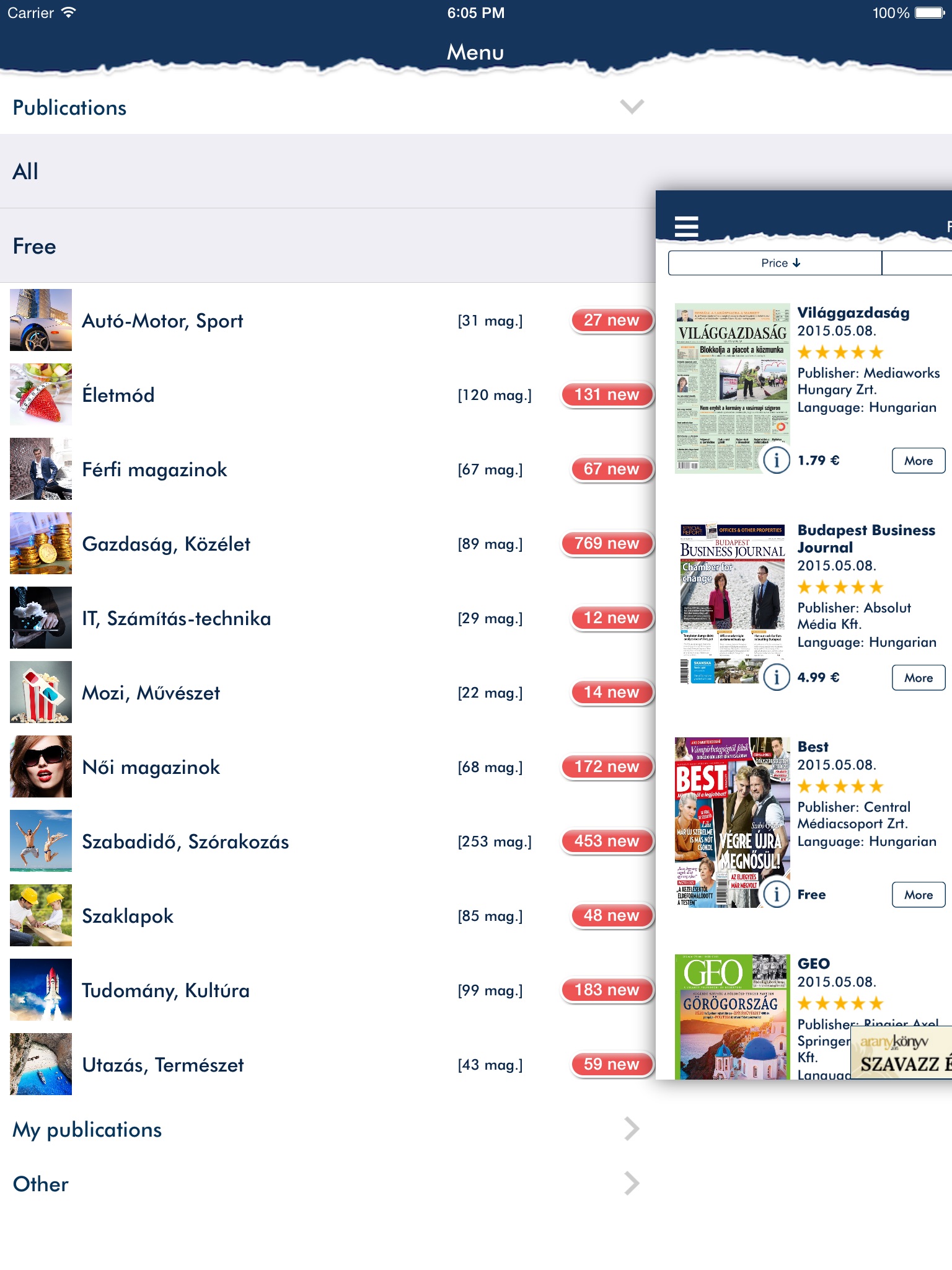 A magazinolvasó alkalmazás ingyenesen letölthető és számos ingyenes kiadványt tartalmaz.