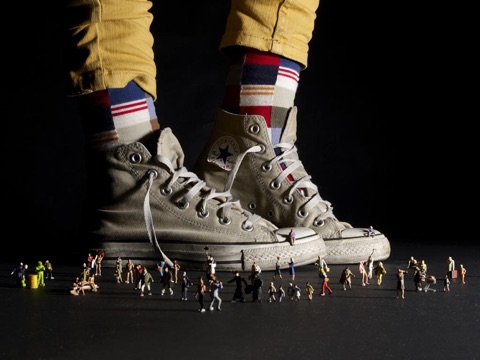 These small characters join an everyday life which seems completely identical to ours. Only the point of view from where we observe them, us the "Gulliver", betrays the gap of their own relationship to the world.