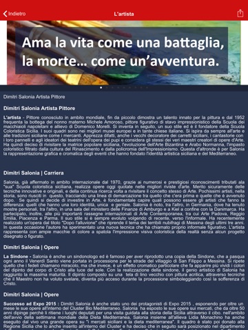 Il maestro Dimitri Salonia, artista affermato conosciuto ed apprezzato in ambito internazionale, grazie ai numerosi e prestigiosi riconoscimenti tributati alla “sua” Scuola Coloristica Siciliana. Il merito sicuramente è delle tecniche innovative e originali,e la continua ricerca volta a rivisitare il concetto stesso di Arte.