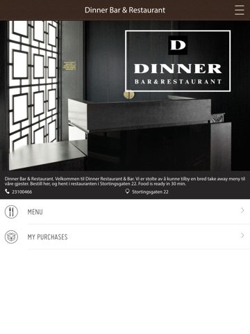 Velkommen til Dinner Restaurant & Bar. Vi er stolte av å kunne tilby en bred take away meny til våre gjester. Maten du bestiller kan hentes og betales i vår restaurant i Stortingsgaten 22.