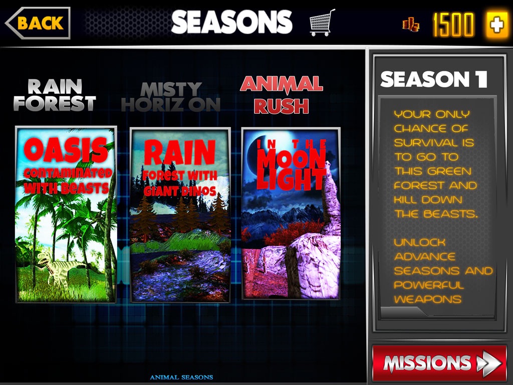 If you like adventures, Explore large variety of dinosaurs traveling through the woods for game survival with sniper or any other provided weapon hunting Dino seasons. Explore Jurassic world shooting deadly animals. You can always purchase new weapons.