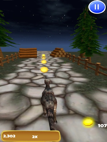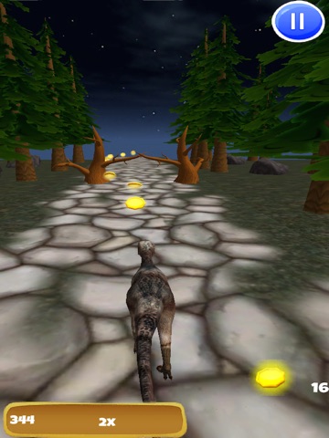 Race your dinosaur through the forest along the stone path, collecting gold coins along the way to use to unlock bunches of upgrades that include longer duration of bonuses, extra lives and even survival mode. But beware of the logs, rocks, tree branches and other obstacles as you out run the dangerous hunters.