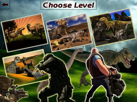 Select one weapon out of 4 super gun and target for these carnivores Dino in the Hazardous area shooting simulator.