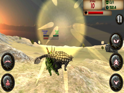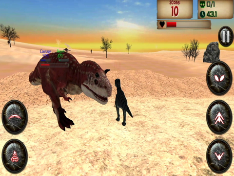 For an hour, go to the Jurassic era, you live in the world of dinosaurs. With nine kinds of dinosaurs you can chase, fight, combat, then taste the oldest natural atmosphere. This action can play with five selectable tempo slowest to fastest. The game will be desert landscape or arctic area with many dinosaurs. In each section, You manage and control the different dinosaur species(dinosaur genre, breed of dinosaur). Every dino has his own color, sounds, anim of the attacks, hit and jumping.