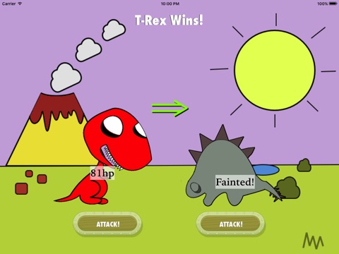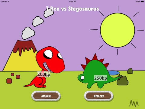 Become a dinosaur and challenge your friends in this fun two-player battle game! You can choose to be one of six dinosaurs: Triceratops, Stegosaurus, Diplodocus, Velociraptor, Spinosaurus or Tyrannosaurus Rex. Each has its own unique strength and weakness, but what matters most is your own speed - the faster you attack, the more chance you have of winning. Great fun for all ages!