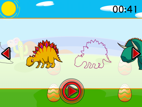 卵を割って同じ向きの恐竜を捕まえる、絵合わせ(神経衰弱)ゲームです。