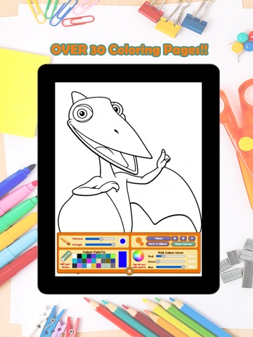 Allow children to color their favorite dinosaurs over and over with easy to change colors allows your child to create different variations of their masterpiece. Share your childs creation or save to your device to show their adventure later.
