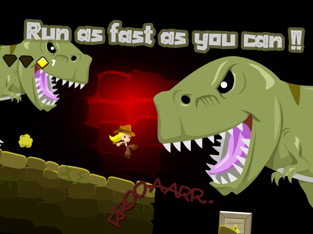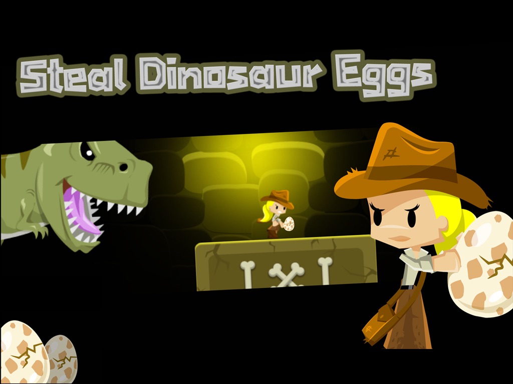 Help an archeology girl keen on the investigation of T Rex caves , steal dinosaur eggs and escape from the giant T Rex while collecting gold and gems to get a perfect score!