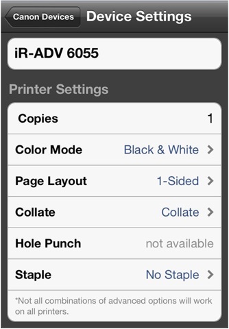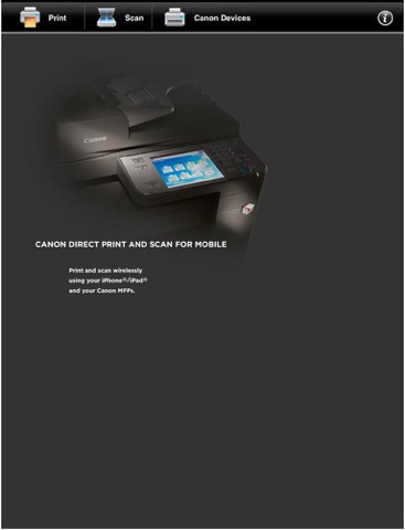 Canon USAs mobile print & scan app for imageRUNNER and imageRUNNER ADVANCE devices for iPhone and iPad.