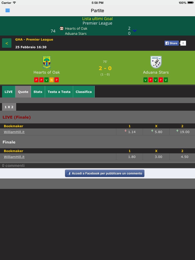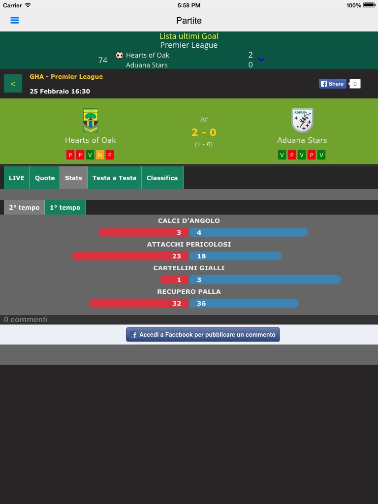 Troverai anche un pratico box con lultimo goal segnato e la possibilità di accedere alla lista completa cronologica.