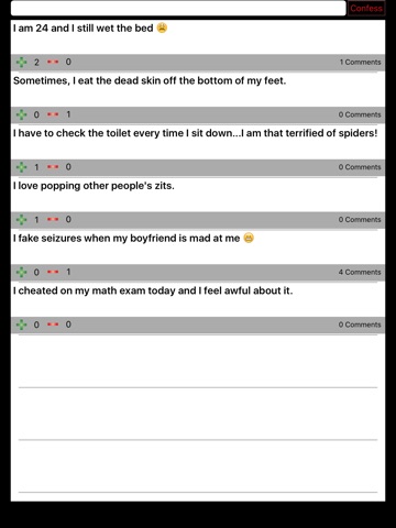 Share all of your deepest darkest secrets completely anonymously. Dirty Secrets has no login or usernames allowing total freedom to post, comment, and rate.
