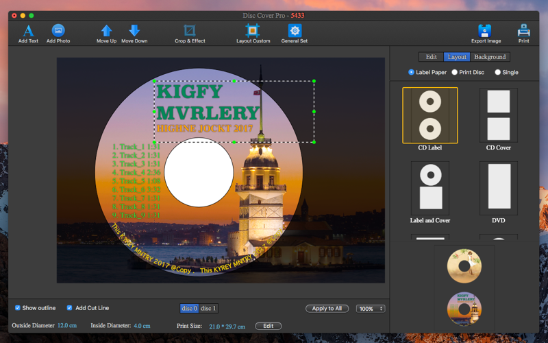 CD DVD Cover Pro - Disc Label is a professional tool to design cd label, dvd label, cd cover, dvd cover, cd case, dvd case, cd booklets, dvd booklets, jewel case and so on.