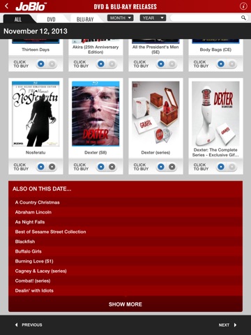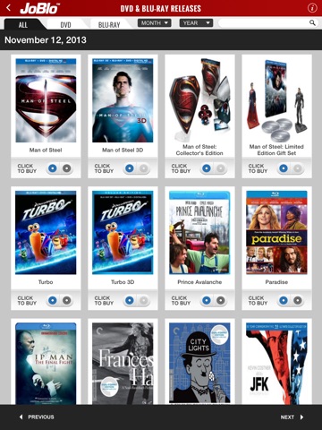 JoBlo.com was founded in 1998 by a major movie nerd. Over the years, the site has turned into the ideal spot for massive movie fans to find all that they’re looking for about their favorite films including news, reviews, interviews, trailers and a whole lot more! Around 2005, JoBlo.com added a DVD RELEASE DATES section to its site and it quickly became one of its most popular sections on the site. In 2013,JoBlo.com launched this app which allows movie fans “on the go” to quickly catch up on the latest releases. You can now also easily browse DISC and THEATRICAL RELEASE DATES.