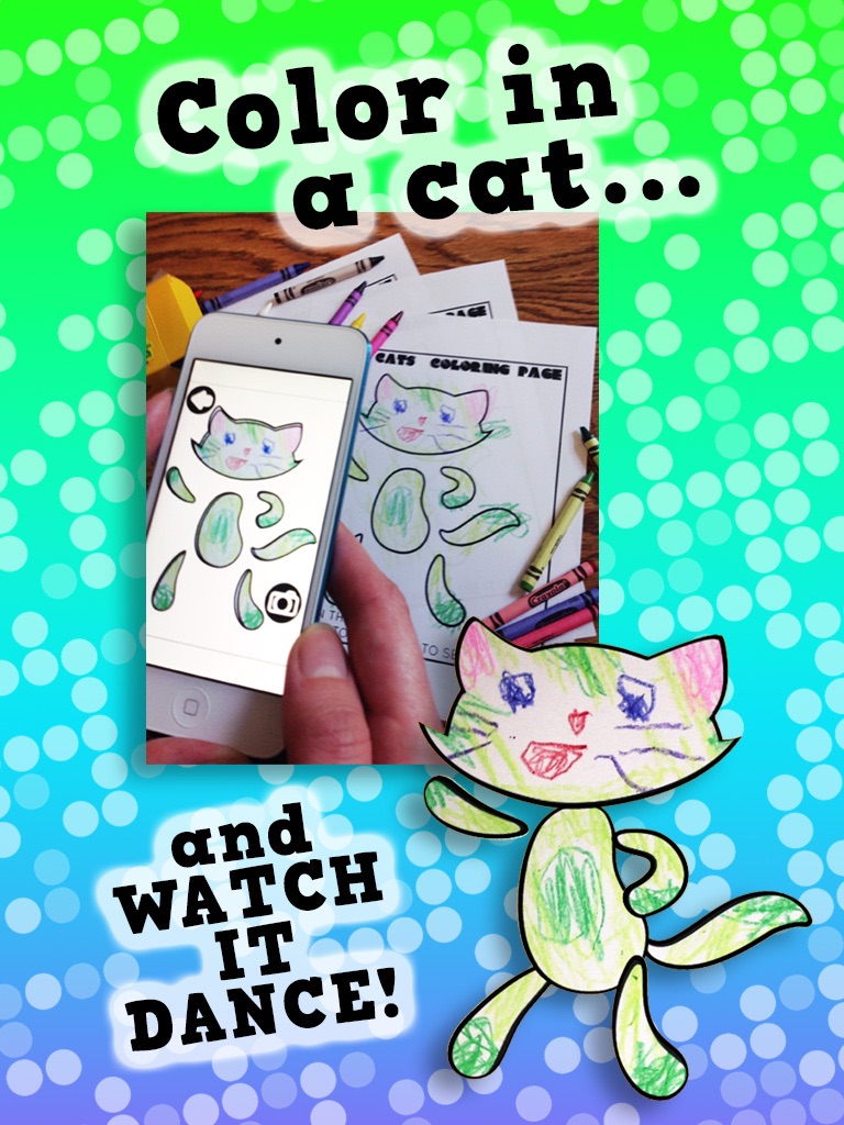 Disco Cats also has a coloring book page so kids can design their own custom dancing cats. Print out the page, color it in, take a snapshot using the app and their custom kitty will be grooving along in no time!