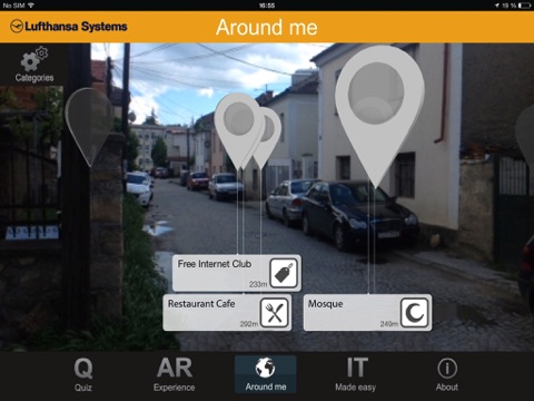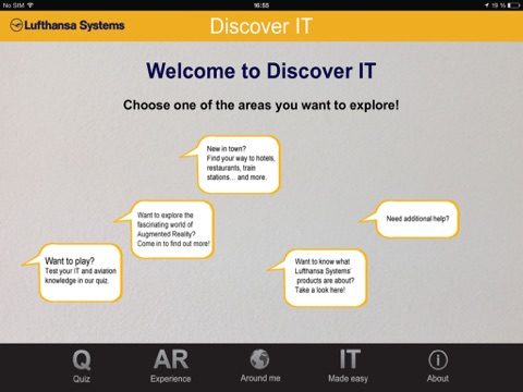 Enjoy the magical experience of this new technology by scanning Lufthansa Systems Trackables or taking photos with Lufthansa Systems’ ITman. Moreover you can explore your surrounding – this app will guide you to POIs nearby.