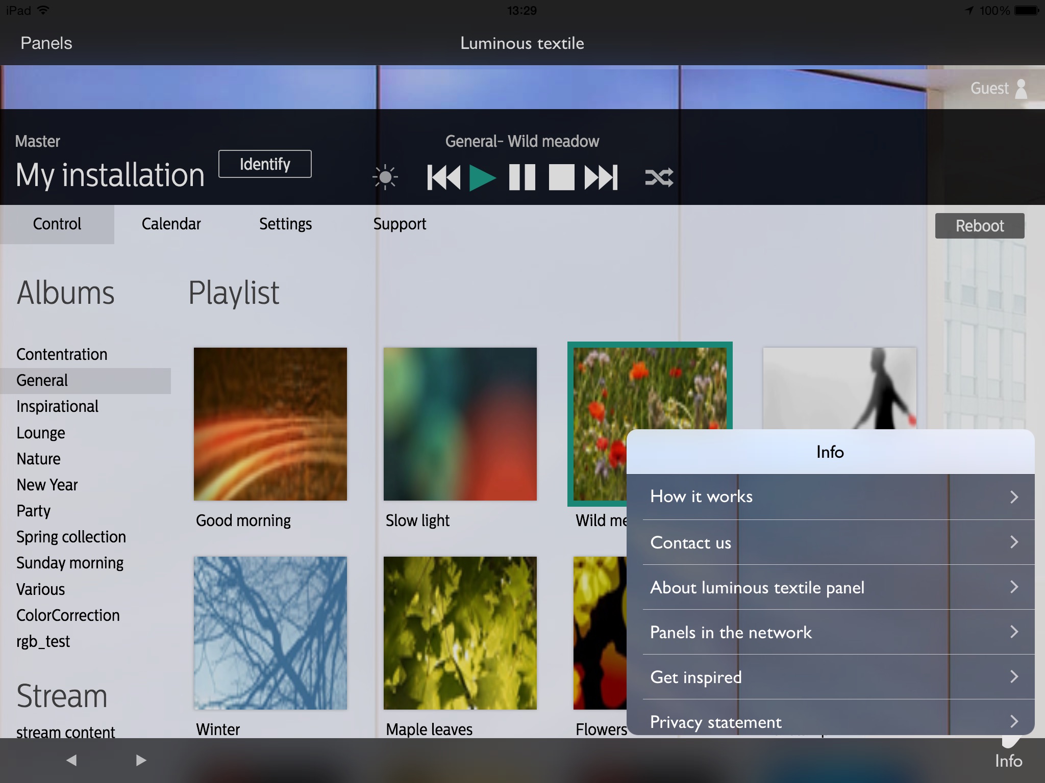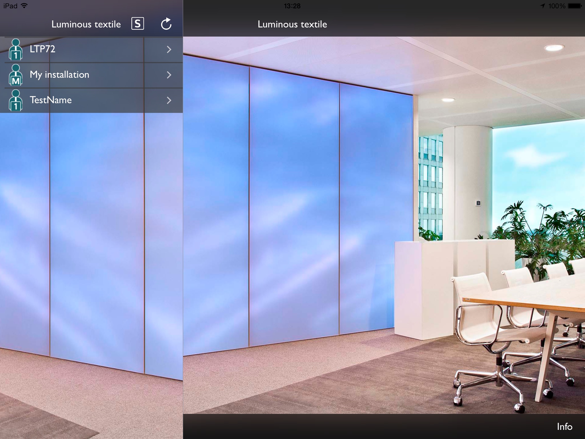 Use DiscoverMe LTP app to discover Luminous Textile Panels (LTPs) in a network. The app will automatically forward you to the Web UI (user interface), which is presented in the panel (LTP). Via the web UI of the panel, a user can control the panels in the network. The user of the app should have or is already allowed to access the network.