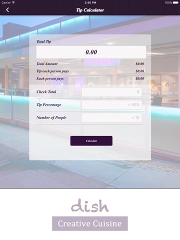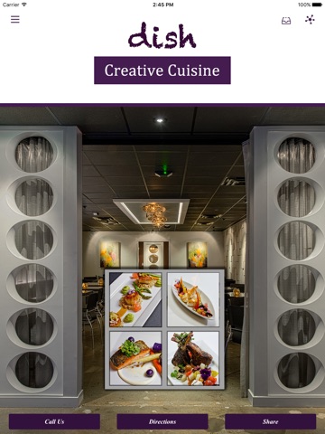 At dish, we pride ourselves in creating new and exciting contemporary American cuisine with an emphasis and focus on flavor. We use exceptional ingredients including the best available local and organic products whenever possible. We believe that food should nurture not only the body, but the mind and spirit as well. Of primary importance to us is the dining experience of our guests. Our intimate dining room encourages the enjoyment of our modern cuisine, conversation and connection. Eating at dish is not just dinner. It is an experience.