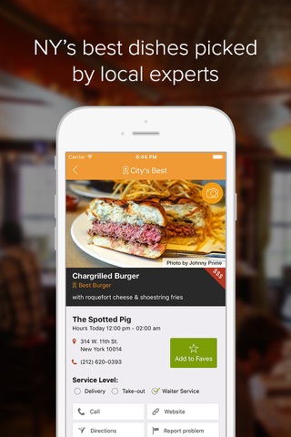 Save for Later: Mark your “Faves” to easily find them later or plan a food crawl