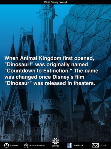 *To better improve our updates, we encourage all DISNEY FACTS users to contribute fun Disney facts of their own, as well as correct or challenge any information found within the application.*