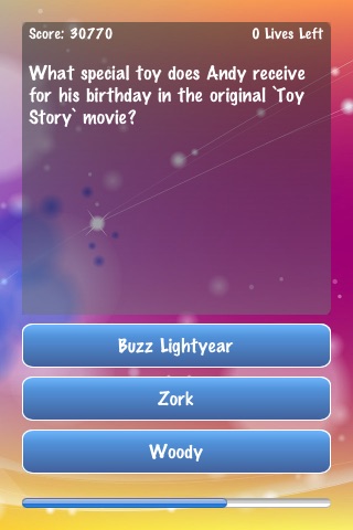 Vraiment un très bon quiz! Le niveau est bien dosé. Je recommande aux vrais fans de Disney..