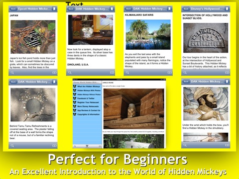 If you buy the hidden Mickey book at most Disney stores you will find a hidden Micky book that will help you find more mickeys and have better clues and more places to find Mickey. Not a great app.