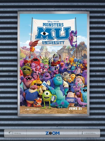 The Disney Zoom app uses image recognition technology that allows you to scan and interact with a selection of Disney movie posters, advertisements, in-store displays, product packaging and more to bring your Disney experiences to life. Scan select Disney displays at bus stops, in malls, as well as at special displays in your local theater or retail locations*. You can also scan at home at any time by visiting http://www.zoomdisney.com/#gallery.