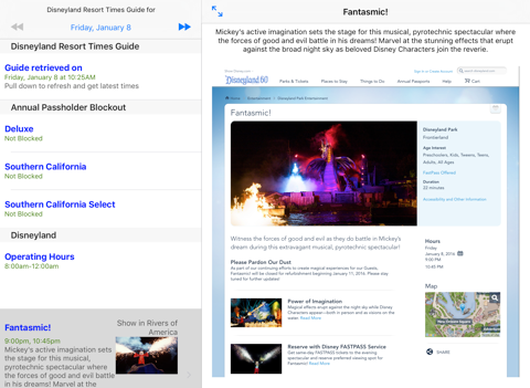 This app does one thing, and it does it well. The fastest way to see if your annual pass is blocked out and what time entertainment at the Disneyland Resort is happening.