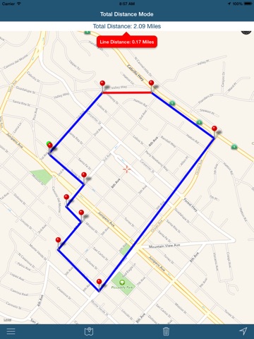 This app does pretty much want I want for planning bicycle rides. I do wish there was a little extra space around the pin drop icon - It could be just me, but I frequently hit the book marked location icon by accident; surely the pin drop has to be most used and deserves a bit more real estate. Also Id like to be able to save routes, with their total mileages. Actually it would be great to show the pin to pin distances right on the route. So, thanks for a useful app; just do what I ask and it will be perfect!