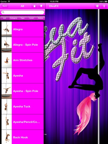 From DivaFit, LLC Pole Dance Studios comes the most complete pole dancing fitness app yet! With over 170 videos of spins, combo spins, tricks, combo tricks, exercises, stretches and transitions, this app will compliment any pole dance practice. DivaFit believes that pole dancing is an empowering workout and dance form for women of all ages and therefore has built an app that includes notes for safe execution of all the moves, a place to type in your own notes, track your progress, and sort moves by beginner, intermediate and advanced. Whether your practice is at home, or in a studio, this app is a great practice tool. Pole dancing is a fun and healthy addiction – start checking off your “achieved” moves today!