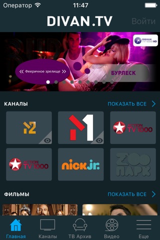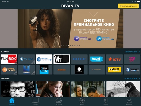 Download DIVAN.TV and watch your favorite TV channels and movies with the video archives back to 14 days.