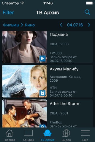 - TV Archive feature that allows you to watch your favorite channels in the record at any time.