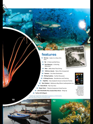 Scuba diving magazine. Covering a vast range of subjects that involve diving: Travel, Photography, Medical, Conservation, Marine life. Technical diving,Product News & Diving News.