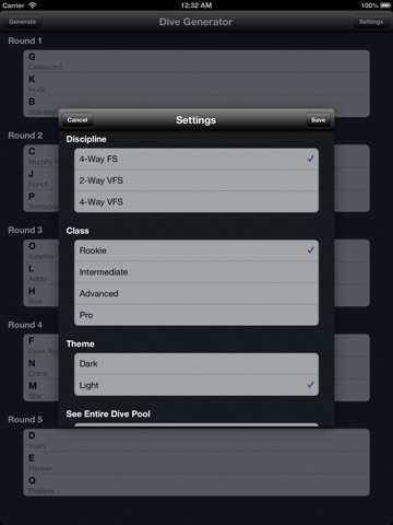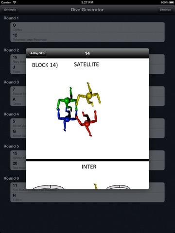 Dive Pool Generator allows you and your team to plan out your FS and VFS practice rounds with ease. Arrive at the drop zone or wind tunnel and generate your 2-way or 4-way dive pool instantly. If you cant remember a formation or block, theres no need to worry - tap on it and well provide you an image or description!