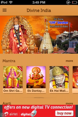Divine India is provides its customers LIVE videos from popular Indian shrines across different faiths. Customer can also watch non live videos on aarti, bhajan, kirtan, dua, hamd, qawwali, carols etc on this application.