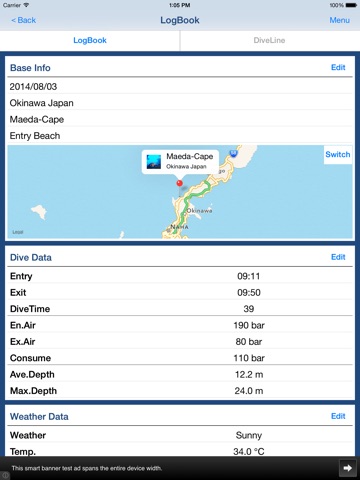 2. Create Scuba Diving LogBook with location information.