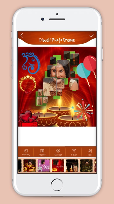 - Select photos from Gallery album. Select Best Diwali Frame that suitable your photos.
