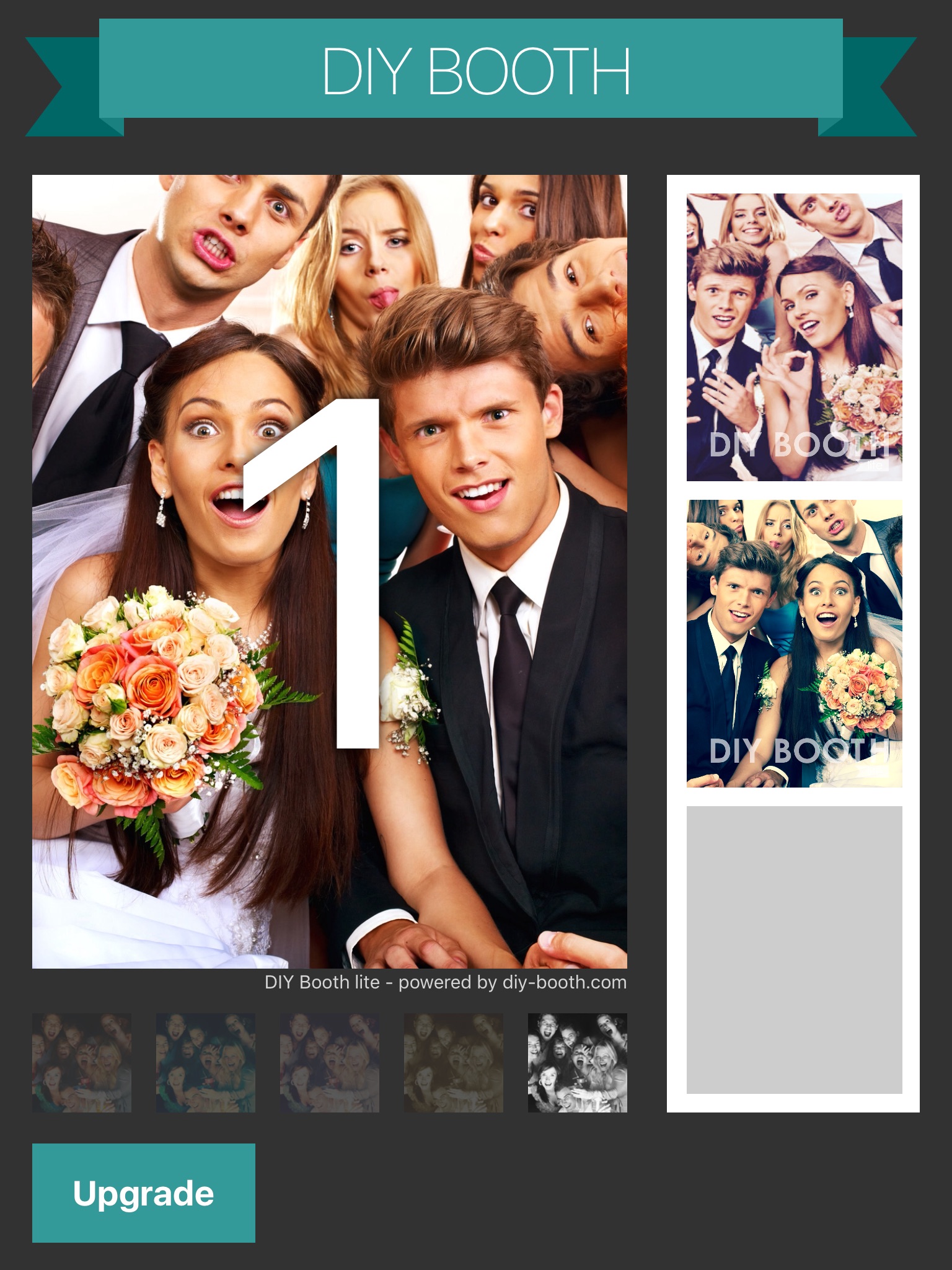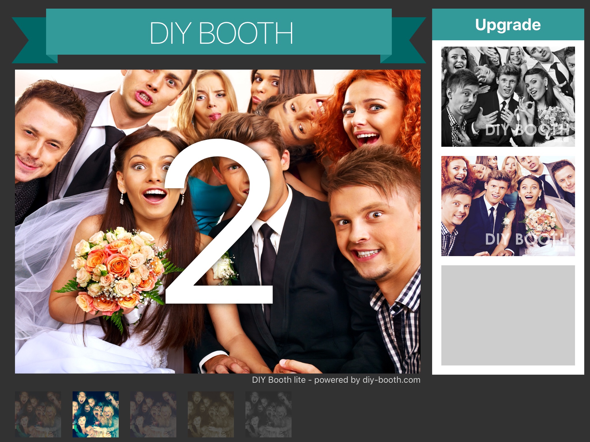 DIY Booth Lite adds a watermark to your photos. You can easily upgrade the app to DIY Booth Pro to avoid watermarks within your pictures.