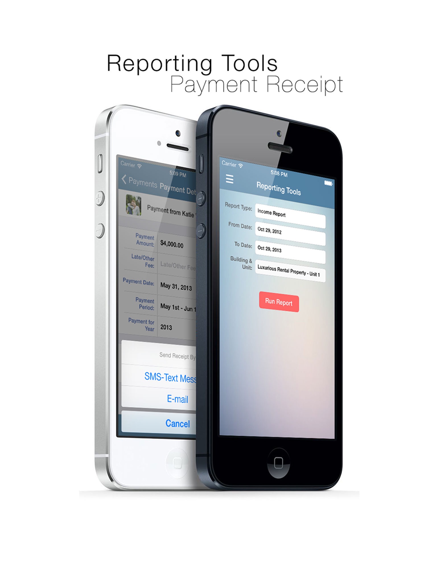 ◆ Send payment receipt to tenants by SMS text message or e-mail.
