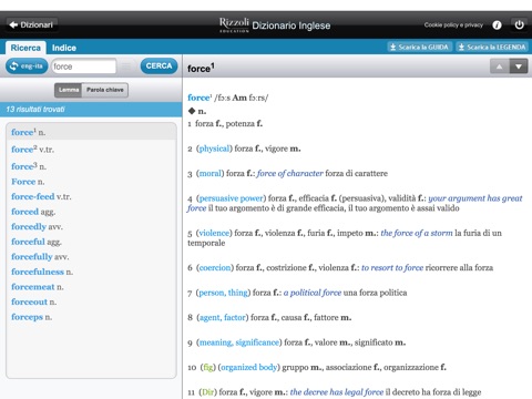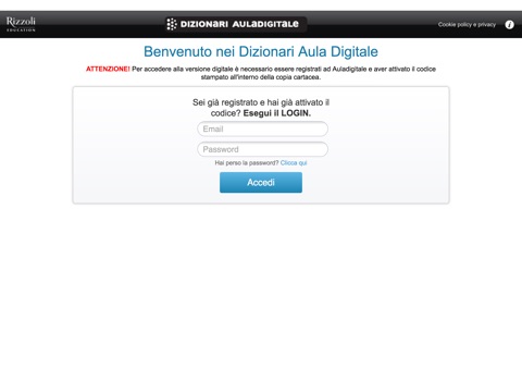 Per fruire i contenuti dellapplicazione è necessario essere connessi a Internet e aver attivato sul sito Rizzoli Education il codice PIN stampato nella versione cartacea dei dizionari.