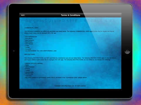 ** High-Definition downloadable stereo audio packs can be used for Live Commercial Use in your own DJ software or editing/mixing program outside of the app, during or prior to your Live performance. You can also use these at clubs, concerts, raves, parties, venues or anywhere else that you are performing Live.