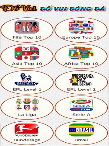 Bạn biết được bao nhiêu quốc kỳ đội bóng tại các giải thi đấu: Fi-fa Top 10, Europe Top 10, Asia Top 10, Africa Top 10, EPL Level 1, La Liga, Serie A, Bundesliga and Brasil ?