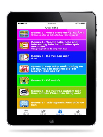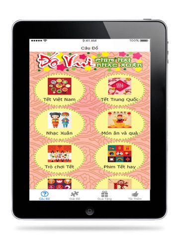 " – bao gồm rất nhiều thông tin và câu đố cực kỳ thú vị về Tết Nguyên Đán, những câu đố hấp dẫn không chỉ giúp bạn thử trí đoán tìm và khả năng phán đáp, tìm ra án đúng, mà còn giúp bạn bổ sung thêm kiến thức về phong tục tập quán trên khắp lãnh thổ của dân tộc Việt Nam và một số nước Đông Nam Á như Trung Quốc,… diễn ra trong những ngày Tết, như: các trò chơi dân gian, các món ăn, các bộ phim hay,…