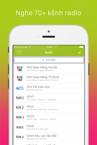 - Ứng dụng tuyệt vời nghe radio online từ các kênh VOV, VOH, Xone FM, radio 64 tỉnh thành,...
