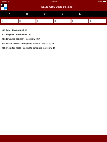 Easily select valid codes and the app will identify the IC (Instance Class) and the Description of the OBIS Code