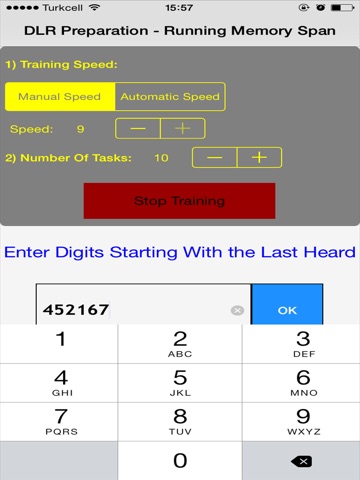 Running Memory Span (RMS) is a module of DLR Test for pilot training. With this training tool, you can practice running memory span on your mobile phone or tablet. You can select number of tasks and difficulty level ( speed of practice). At the end of the training you can track your results. With this tool, you can work for RMS module in the car,bus,restaurant or anywhere. Just use your devices speaker or headphones to listen to numbers and input what you heard.