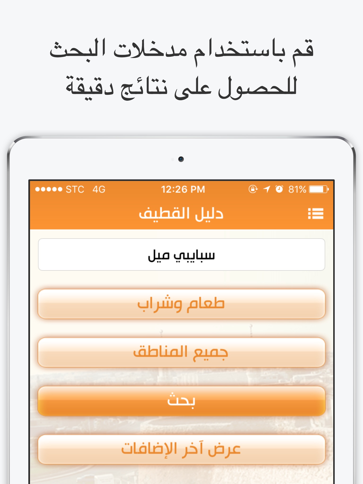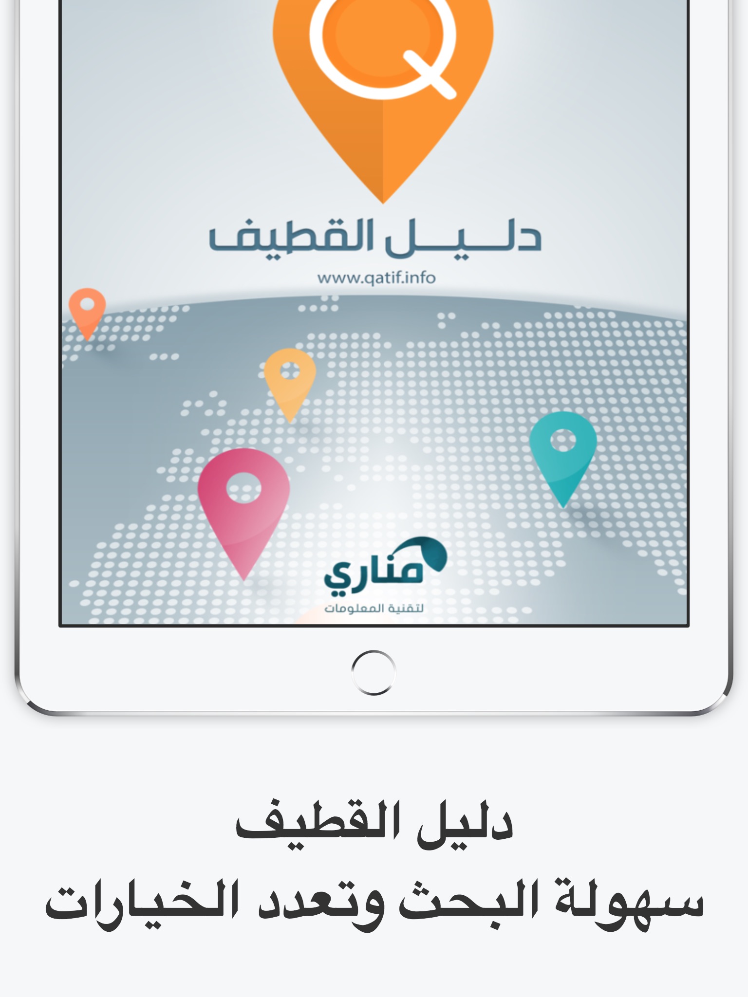 دليل القطيف الإلكتروني يوفر خدمة البحث عن المحلات التجارية والنقاط المتنوعة في محافظة القطيف كما يمكن من خلال التطبيق عرض بيانات مفصلة عن النقاط أو المحال التجارية وعرضها على الخريطة ورسم الإتجاهات بشكل تفاعلي وسهل