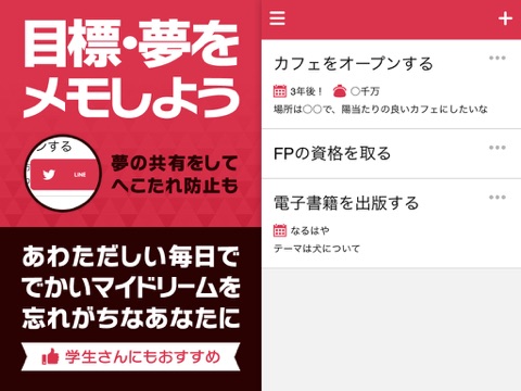 ・夢の共有はタイトルと期限のみ。好きなことを付け足して送信してください